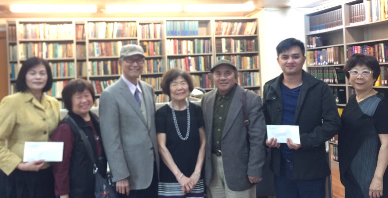 11/8日(六)中午祕書長陳俊光牧師在台北探望「芳彬獎學金」大學生和研究生