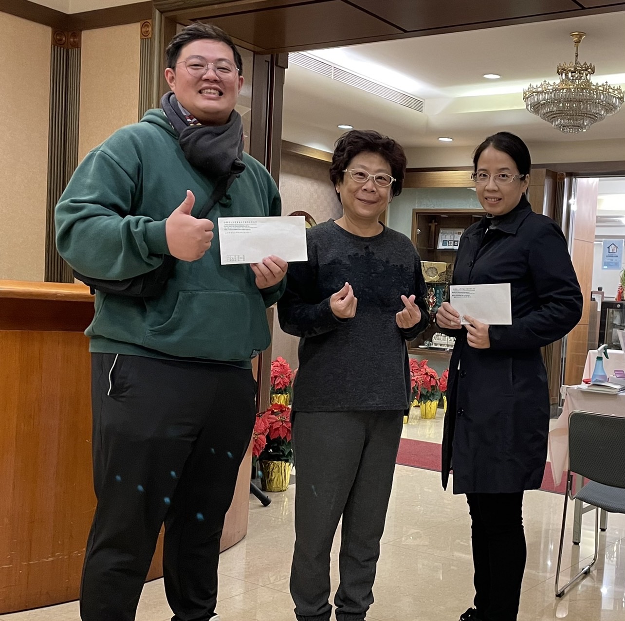 11/8日(六)中午祕書長陳俊光牧師在台北探望「芳彬獎學金」大學生和研究生