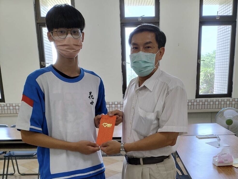 秘書長陳俊光牧師頒發「芳彬紀念基金-花蓮高中學生獎助學金」,大專、研究生獎學金以匯款方式給予。